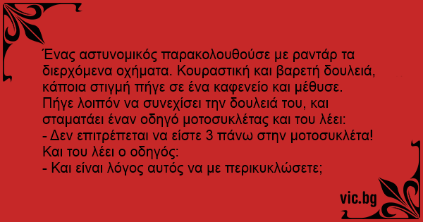 Πήγε λοιπόν να συνεχίσει την δουλειά του, και σταματάει έναν οδηγό μοτοσυκλέτας και του λέει: