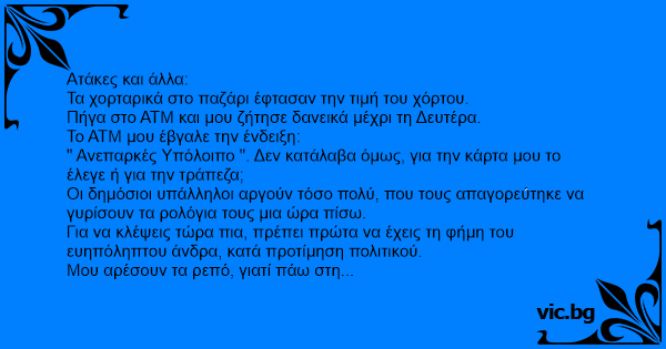 Πήγα στο ΑΤΜ και μου ζήτησε δανεικά μέχρι τη Δευτέρα.