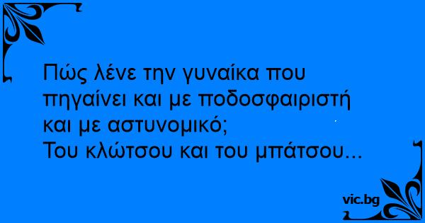 Πώς λένε την γυναίκα που πηγαίνει και με ποδοσφαιριστή και με αστυνομικό;