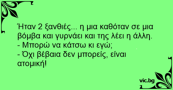 Ήταν 2 ξανθιές... η μια καθόταν σε μια βόμβα και γυρνάει και της λέει η άλλη.