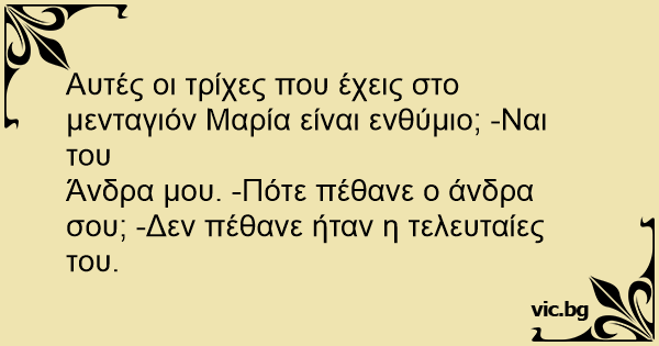 Άνδρα μου. -Πότε πέθανε ο άνδρα σου; -Δεν πέθανε ήταν η τελευταίες του.