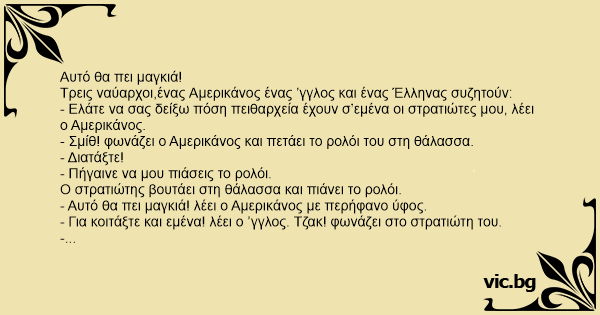 Τρεις ναύαρχοι,ένας Αμερικάνος ένας ʼγγλος και ένας Έλληνας συζητούν:
