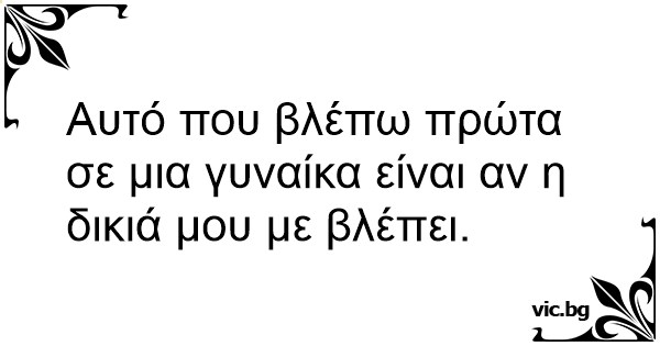 Αυτό που βλέπω πρώτα σε μια γυναίκα είναι αν η δικιά μου με βλέπει.