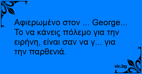 Αφιερωμένο στον ... George...<br />Το να κάνεις πόλεμο για την ειρήνη, είναι σαν να γ... για την παρθενιά.