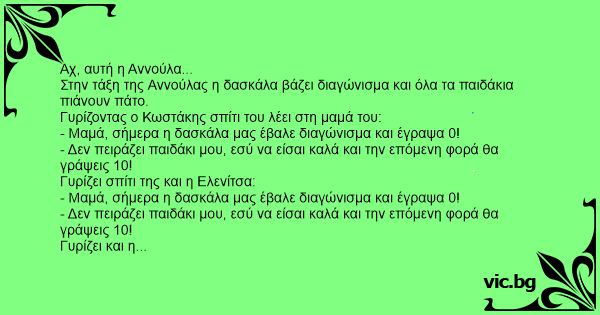 Στην τάξη της Αννούλας η δασκάλα βάζει διαγώνισμα και όλα τα παιδάκια πιάνουν πάτο.