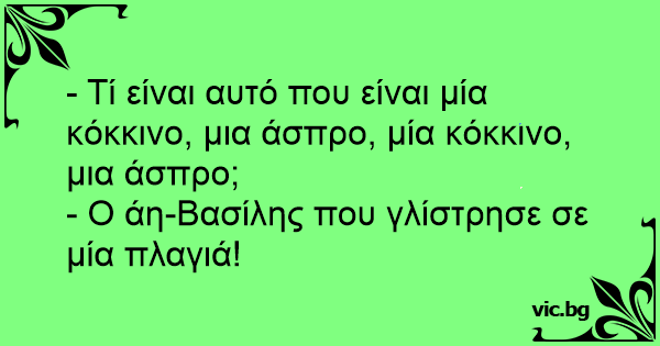 - Τί είναι αυτό που είναι μία κόκκινο, μια άσπρο, μία κόκκινο, μια άσπρο;