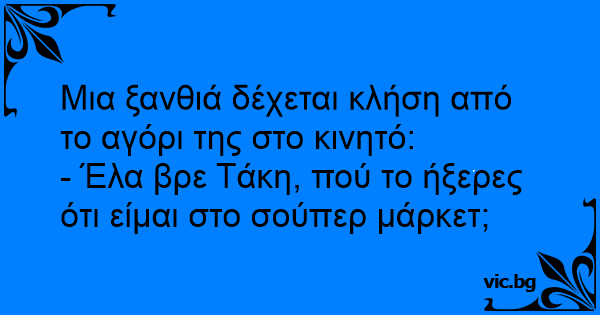 - Έλα βρε Τάκη, πού το ήξερες ότι είμαι στο σούπερ μάρκετ;