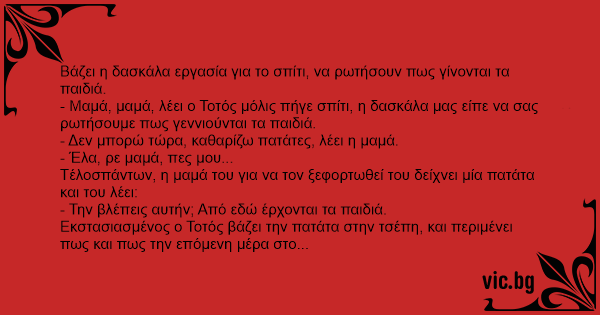 Βάζει η δασκάλα εργασία για το σπίτι, να ρωτήσουν πως γίνονται τα παιδιά.