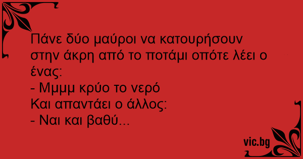 En dansker og en neger sidder ved pool-kanten. Danskeren lægger sin pik i vandet og siger: 26 grader. Negeren lægger sin i og siger: Ja, 26 grader og 1,40m dybt.