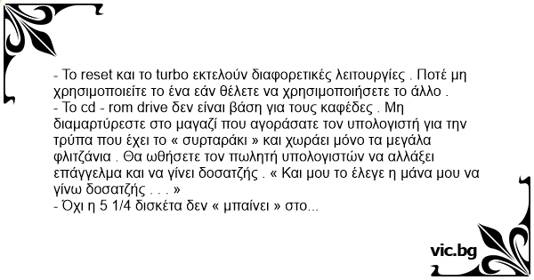- Το reset και το turbo εκτελούν διαφορετικές λειτουργίες . Ποτέ μη χρησιμοποιείτε το ένα εάν θέλετε να χρησιμοποιήσετε το άλλο .