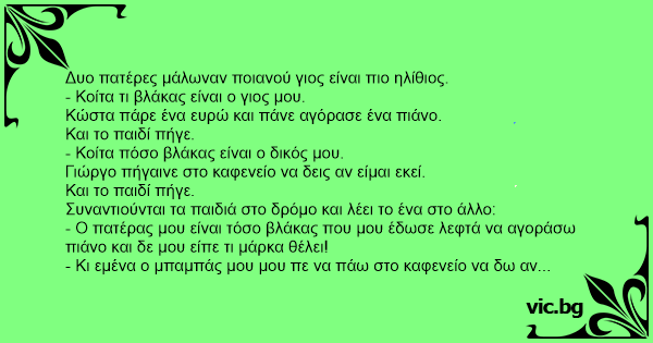 Δυο πατέρες μάλωναν ποιανού γιος είναι πιο ηλίθιος.