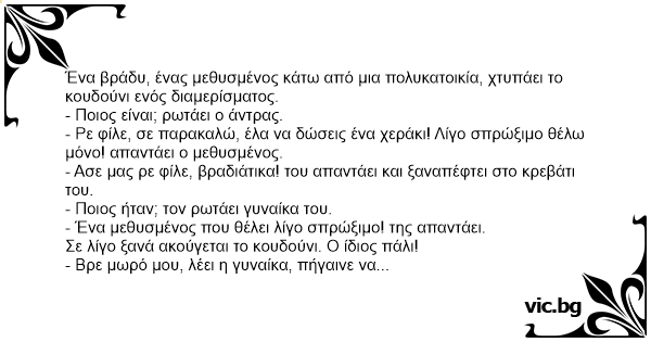 - Ασε μας ρε φίλε, βραδιάτικα! του απαντάει και ξαναπέφτει στο κρεβάτι του.