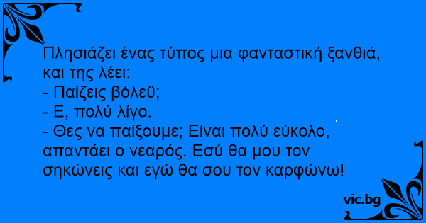 Πλησιάζει ένας τύπος μια φανταστική ξανθιά, και της λέει: