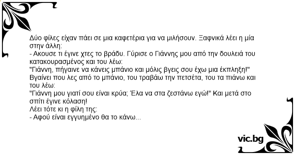 Δύο φίλες είχαν πάει σε μια καφετέρια για να μιλήσουν. Ξαφνικά λέει η μία στην άλλη: