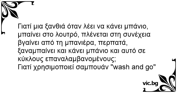 Γιατί μια ξανθιά όταν λέει να κάνει μπάνιο, μπαίνει στο λουτρό, πλένεται στη συνέχεια βγαίνει από τη μπανιέρα, περπατά, ξαναμπαίνει και κάνει μπάνιο και αυτό σε κύκλους επαναλαμβανομένους;