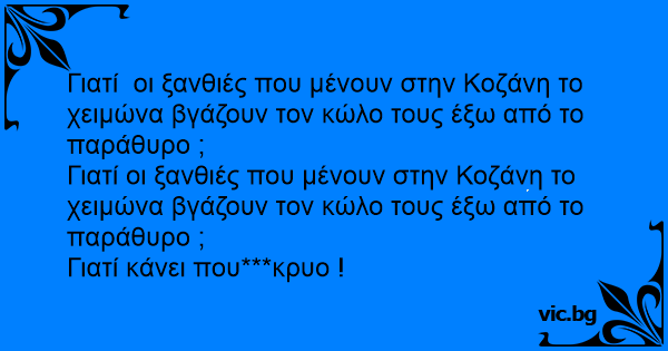 Γιατί οι ξανθιές που μένουν στην Κοζάνη το χειμώνα βγάζουν τον κώλο τους έξω από το παράθυρο ;