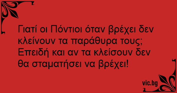 Γιατί οι Πόντιοι όταν βρέχει δεν κλείνουν τα παράθυρα τους;