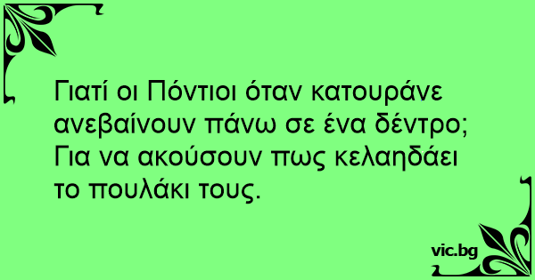 Γιατί οι Πόντιοι όταν κατουράνε ανεβαίνουν πάνω σε ένα δέντρο;