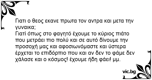 Γιατι ο θεος εκανε πρωτα τον αντρα και μετα την γυναικα;