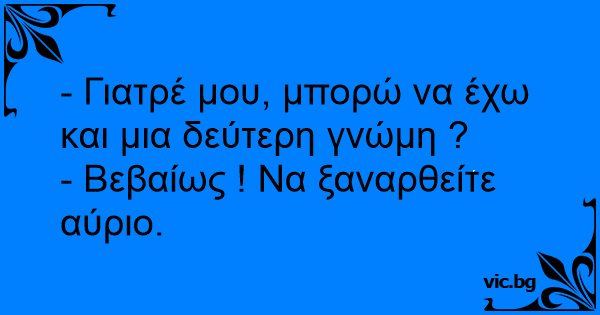 - Γιατρέ μου, μπορώ να έχω και μια δεύτερη γνώμη ?