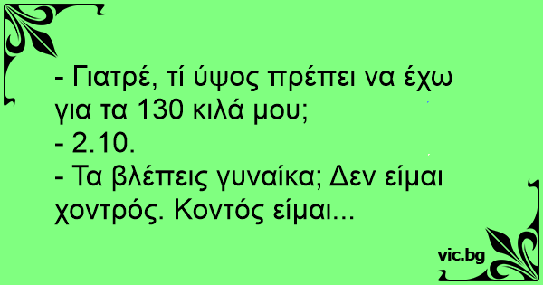 - Γιατρέ, τί ύψος πρέπει να έχω για τα 130 κιλά μου;