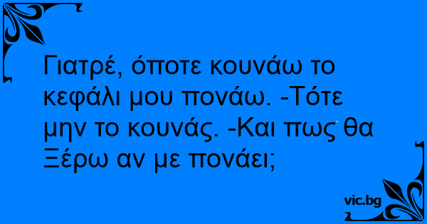 Γιατρέ, όποτε κουνάω το κεφάλι μου πονάω. -Τότε μην το κουνάς. -Και πως θα