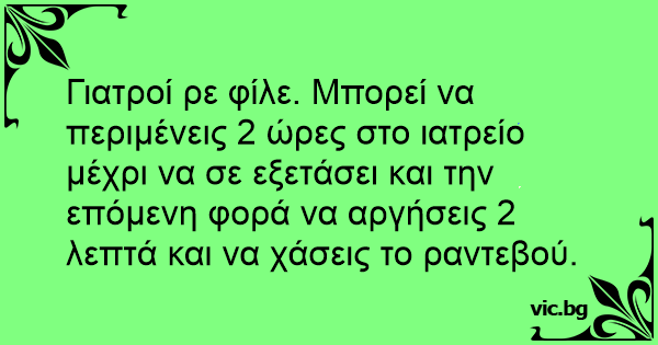 Γιατροί ρε φίλε. Μπορεί να περιμένεις 2 ώρες στο ιατρείο μέχρι να σε εξετάσει και την επόμενη φορά να αργήσεις 2 λεπτά και να χάσεις το ραντεβού.