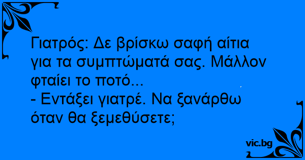- Εντάξει γιατρέ. Να ξανάρθω όταν θα ξεμεθύσετε;