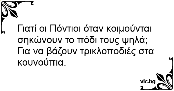 Γιατί οι Πόντιοι όταν κοιμούνται σηκώνουν το πόδι τους ψηλά;