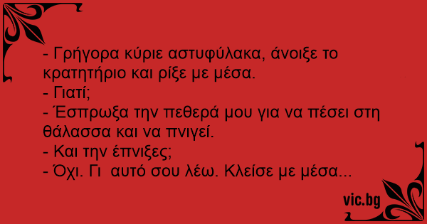 - Γρήγορα κύριε αστυφύλακα, άνοιξε το κρατητήριο και ρίξε με μέσα.