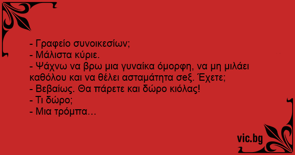 - Ψάχνω να βρω μια γυναίκα όμορφη, να μη μιλάει καθόλου και να θέλει ασταμάτητα σeξ. Έχετε;