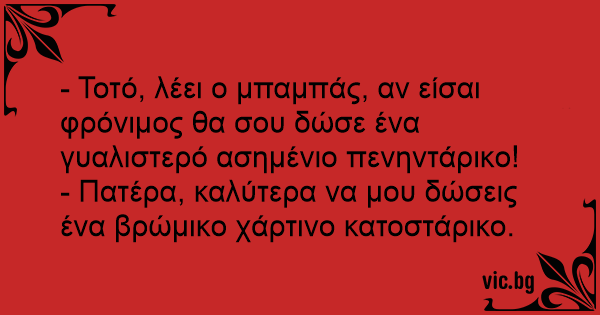 - Τοτό, λέει ο μπαμπάς, αν είσαι φρόνιμος θα σου δώσε ένα γυαλιστερό ασημένιο πενηντάρικο!
