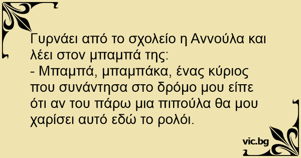 Γυρνάει από το σχολείο η Αννούλα και λέει στον μπαμπά της: