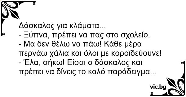 - Έλα, σήκω! Είσαι ο δάσκαλος και πρέπει να δίνεις το καλό παράδειγμα...