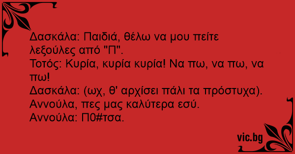 Δασκάλα: Παιδιά, θέλω να μου πείτε λεξούλες από "Π".