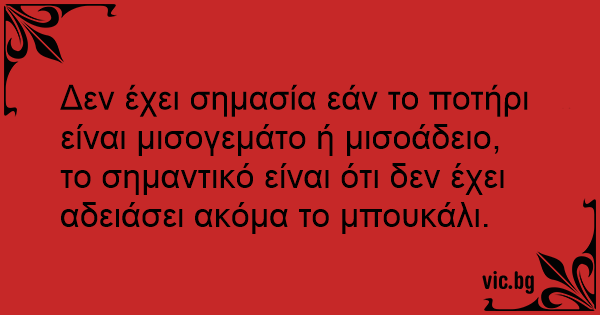 Δεν έχει σημασία εάν το ποτήρι είναι μισογεμάτο ή μισοάδειο, το σημαντικό είναι ότι δεν έχει αδειάσει ακόμα το μπουκάλι.