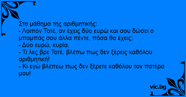 - Τι λες βρε Τοτέ, βλέπω πως δεν ξέρεις καθόλου αριθμητική!