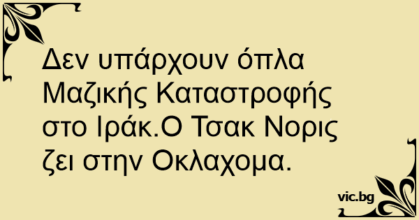 Δεν υπάρχουν όπλα Μαζικής Καταστροφής στο Ιράκ.Ο Τσακ Νορις ζει στην Οκλαχομα.