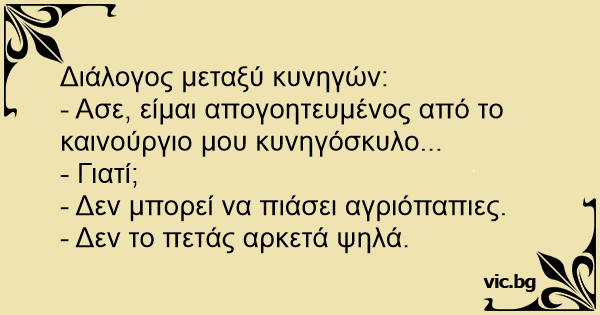 - Ασε, είμαι απογοητευμένος από το καινούργιο μου κυνηγόσκυλο...