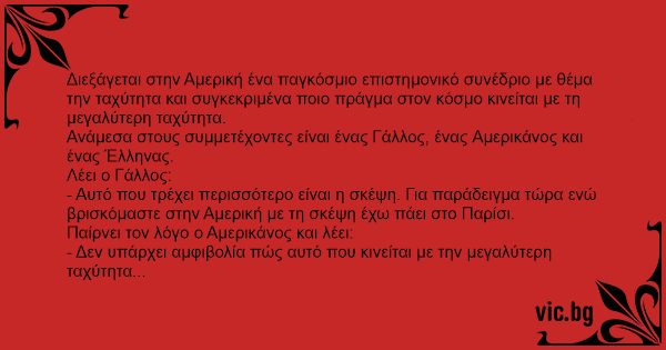 - Трима приятели спорят кое е най-бързото нещо на света. Първият: