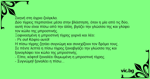 - Είπα, κόφτο! ξαναλέει θυμωμένη η μπροστινή τίγρης.
