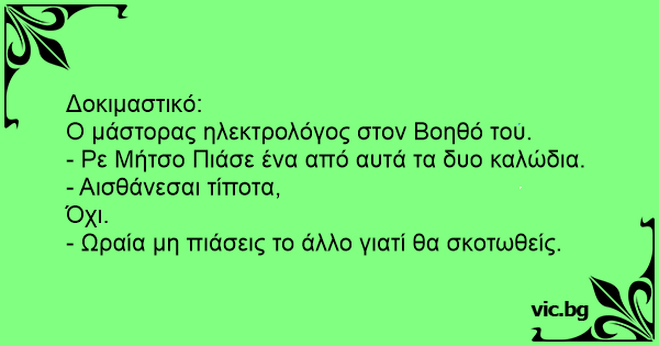 - Ωραία μη πιάσεις το άλλο γιατί θα σκοτωθείς.