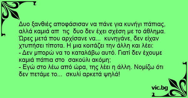 - Εγώ στο λέω από ώρα, της λέει η άλλη. Νομίζω ότι δεν πετάμε το... σκυλί αρκετά ψηλά!