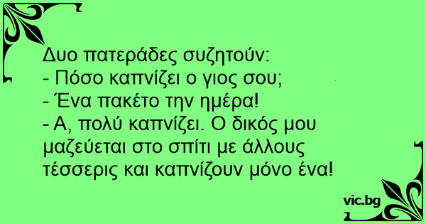 - Α, πολύ καπνίζει. Ο δικός μου μαζεύεται στο σπίτι με άλλους τέσσερις και καπνίζουν μόνο ένα!