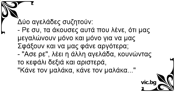 - Ρε συ, τα άκουσες αυτά που λένε, ότι μας μεγαλώνουν μόνο και μόνο για να μας
