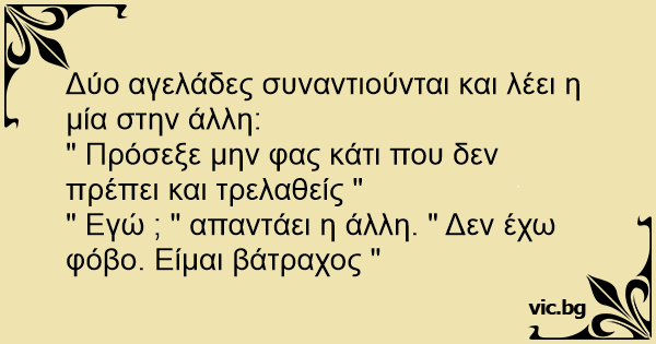 " Εγώ ; " απαντάει η άλλη. " Δεν έχω φόβο. Είμαι βάτραχος "