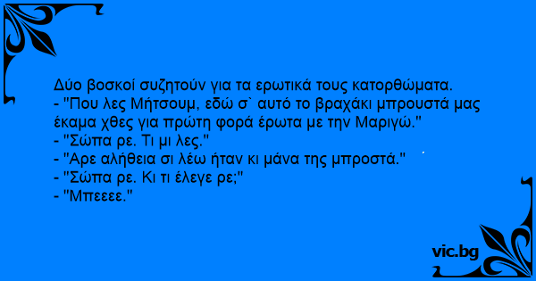 Δύο βοσκοί συζητούν για τα ερωτικά τους κατορθώματα.