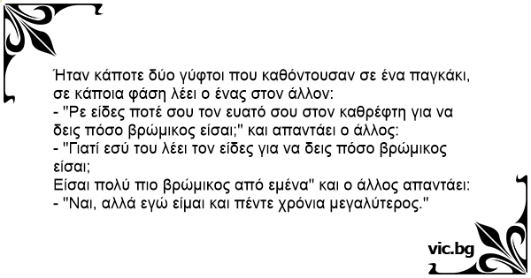 - "Ρε είδες ποτέ σου τον ευατό σου στον καθρέφτη για να δεις πόσο βρώμικος είσαι;" και απαντάει ο άλλος: