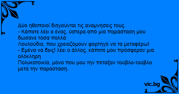 - Κάποτε λέει ο ένας, ύστερα από μια παράσταση μου δώσανε τόσα πολλά
