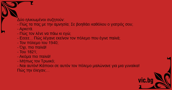 Δύο ηλικιωμένοι συζητούν: -...